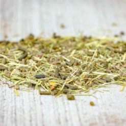 Kräutermischung (Brennnessel, Fenchel, Anissamen, Kreuzkümmel, Birke, isländische Flechten), Reismehl, Weizenkleie, Biergranulat, Kalziumkarbonat, Karotten, Petersilie, Leinsamen, Molkenpulver, Sojaprotein-Konzentrat, Bierhefe, Kalziumglukonzentrat, Magnesiumoxid, Magnesiumparfüm, Kaliumchlorid